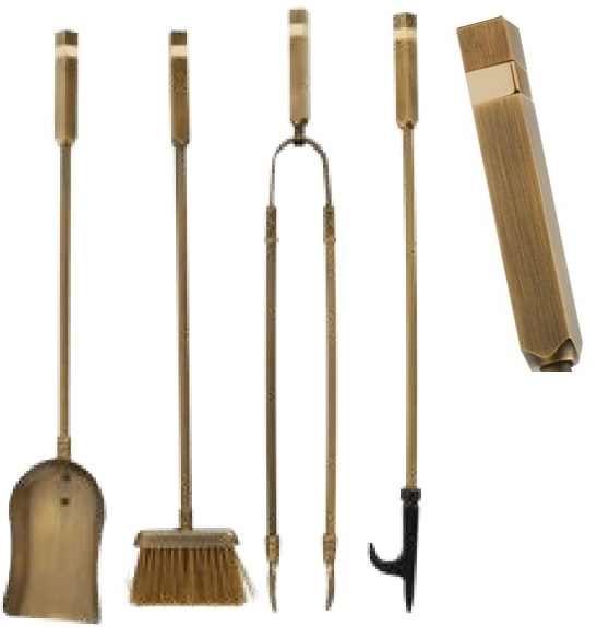 Σετ 4 Εργαλείων Βαρέος τύπου για το Τζάκι σας κατασκευασμένα από μασίφ ορείχαλκο σε Μπρονζέ απόχρωση.Έχει υποστεί ειδική διαδικασία για να μην σκουριάζει & αλλοιώνεται.Προσφέρει μοναδική αισθητική στο τζάκι σας προσθέτοντας στην διακόσμηση του μια απαράμιλλη κομψότητα.Το Ύψος των Εργαλείων δεν ξεπερνά τα 55cm.