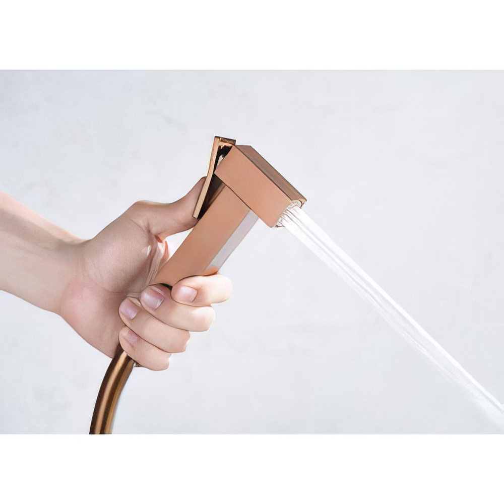 Εντοιχιζόμενος μίκτης ζεστού - κρύου 1 οπής, για πλύση ατομικής υγιεινής ή καθαρισμό λεκάνης σε Ροζ Χρυσό Ματ/Χαλκού φινίρισμα. Περιλαμβάνει: μίκτη, τηλέφωνο Shut-off με αυτόματο stop και PVC σπιράλ 1,00m.Για την λειτουργεία του απαιτείται παροχή νερού (κρύου / ζεστού) δίπλα στη λεκάνη.