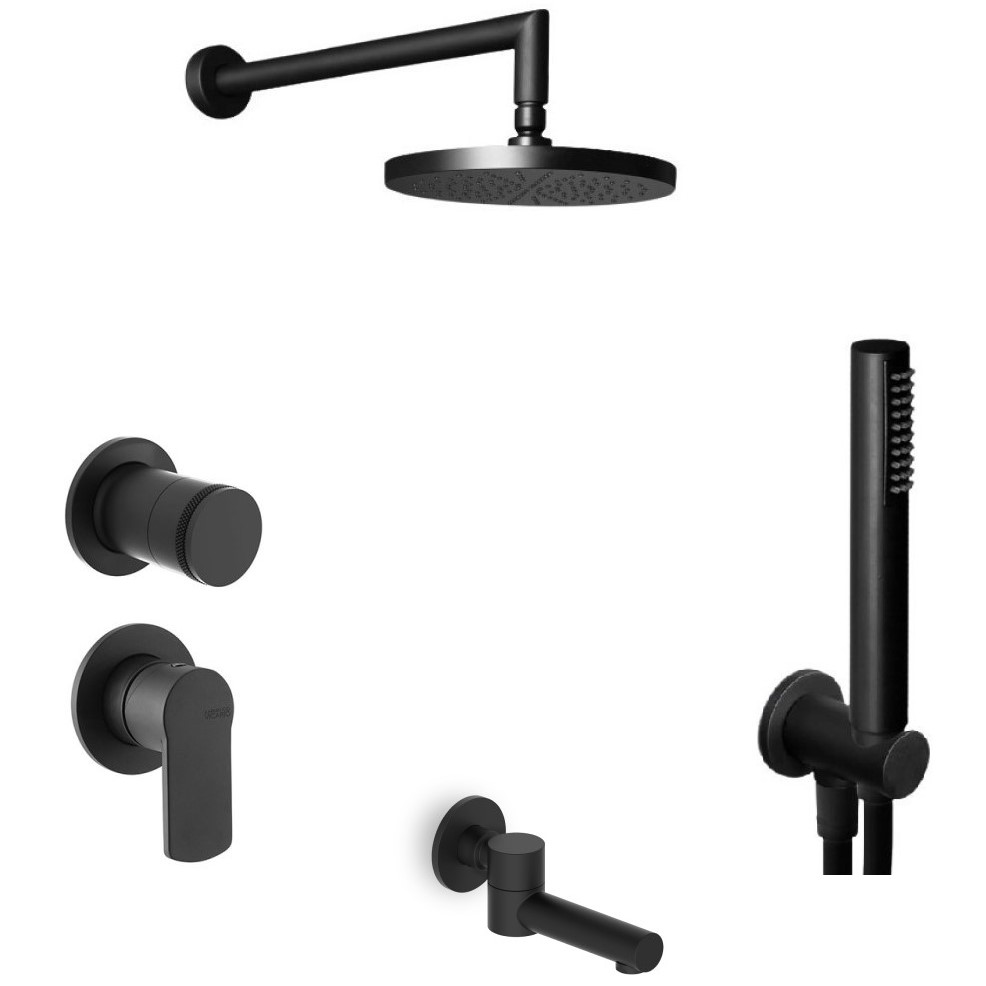 Σετ Ντουζ Εντοιχισμού Armando Vicario Glam Μαύρο Ματ (με Περιστροφικό Εκτροπέα 3 Εξόδων)