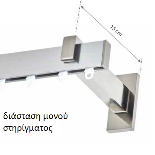 Επιβλητική σειρά κουρτινόξυλου με πλακέ Γκρι σκούρο σιδηρόδρομο και τετράγωνα στηρίγματα βαρέος τύπου σε Νίκελ Σατινέ φινίρισμα.Μοναδική κομψότητα και αισθητική για μοντέρνους χώρους.Για Διπλές κουρτίνες διατίθεται και σε διπλό δεύτερο πλακέ σιδηρόδρομο.Το στήριγμα του μονού σιδηρόδρομου έχουν ολικό μήκος 15cm ενώ του διπλού 26.5cm.