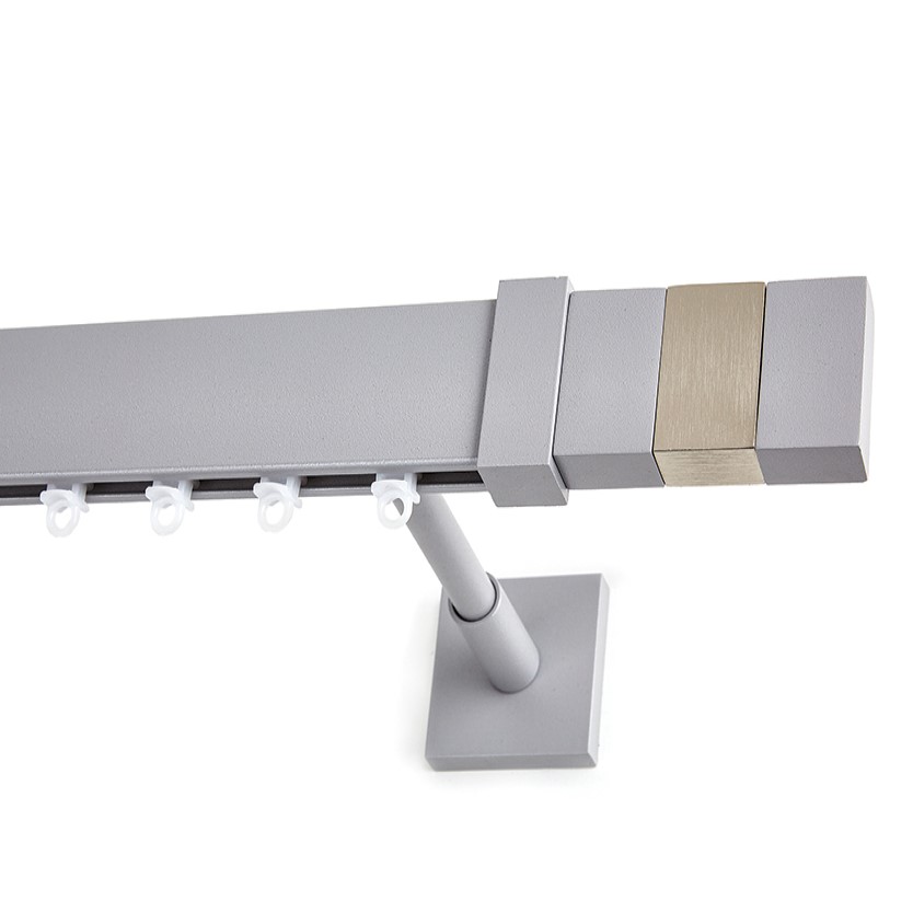 Σιδηρόδρομος κρέμασης κουρτινών μοντέρνας γραμμής σε πλακέ minimal design σε Γκρι φινίρισμα με διακοσμητικό άκρο με λεπτομέρειες Σατινέ Ματ. Έχει προφίλ 4cm και διαθέτει μεταλλικά στηρίγματα τα οποία εξέχουν από τον τοίχο 15cm σε περίπτωση που επιλέξτε διπλό. Υπάρχει η δυνατότητα επιλογής πολλών διαφορετικών διαστάσεων για την επιλογή μονής ή διπλής κουρτίνας