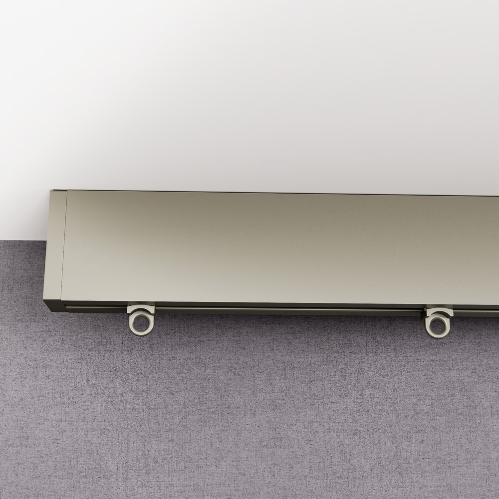 Σιδηρόδρομος κρέμασης κουρτινών για τοποθέτηση οροφής με ειδικά στηρίγματα μοντέρνας γραμμής σε πλακέ minimal design σε Λαδί φινίρισμα με Λαδί τάπες. Υπάρχει η δυνατότητα επιλογής πολλών διαφορετικών διαστάσεων. Διαθέσιμο σε μονό ή διπλό σιδηρόδρομο για να επιλέξετε.