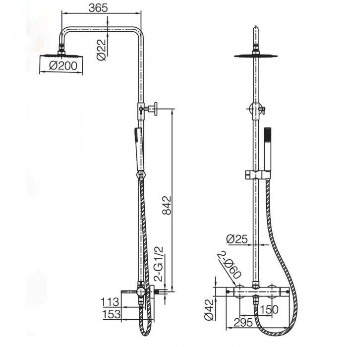 Στήλη Ντους 2 εξόδων Imex Delos BDD055/NG Μαύρο Ματ (Ρυθμιζόμενου Ύψους 88-124cm)