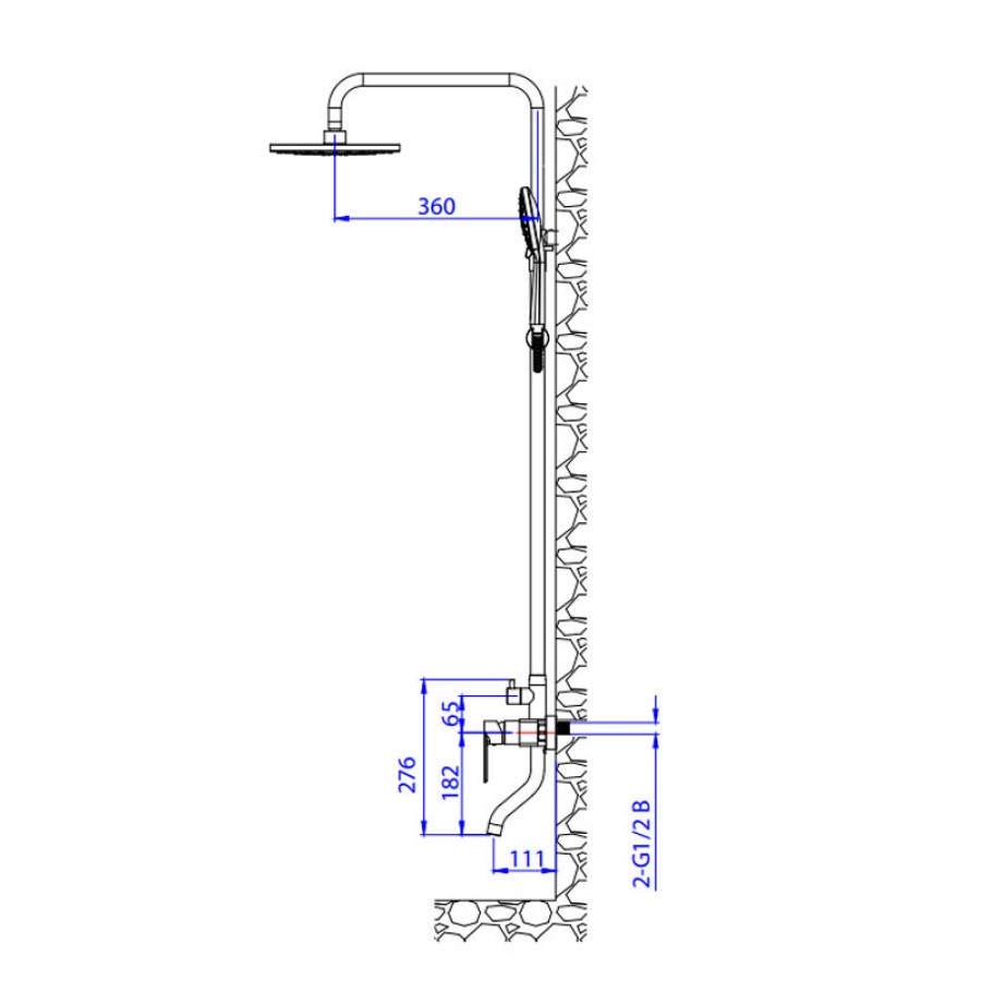 Στήλη ντους σε μοντέρνο κυλινδρικό σχεδιασμό που διαθέτει κολώνα ντους ανοξείδωτη σε Χρωμέ Γυαλιστερό φινίρισμα, ρυθμιζόμενου ύψους 94 - 129 cm, από την στάθμη της μπαταρίας, μπαταρία βαρέως τύπου, κομπλέ με μονό μίκτη, Κεφαλή ντους τετράγωνη ABS 20x30cm ανακλινόμενη, σε χρωμέ γυαλιστερό , Τηλέφωνο 5 ροών anticalcare, τετράγωνο Στήριγμα τηλεφώνου στην κολόνα, Επιτοίχιο στόμιο ανοξείδωτο, Κολώνα ανοξείδωτη (94 - 129 cm), Άθραυστο σπιράλ PVC 1,5 m