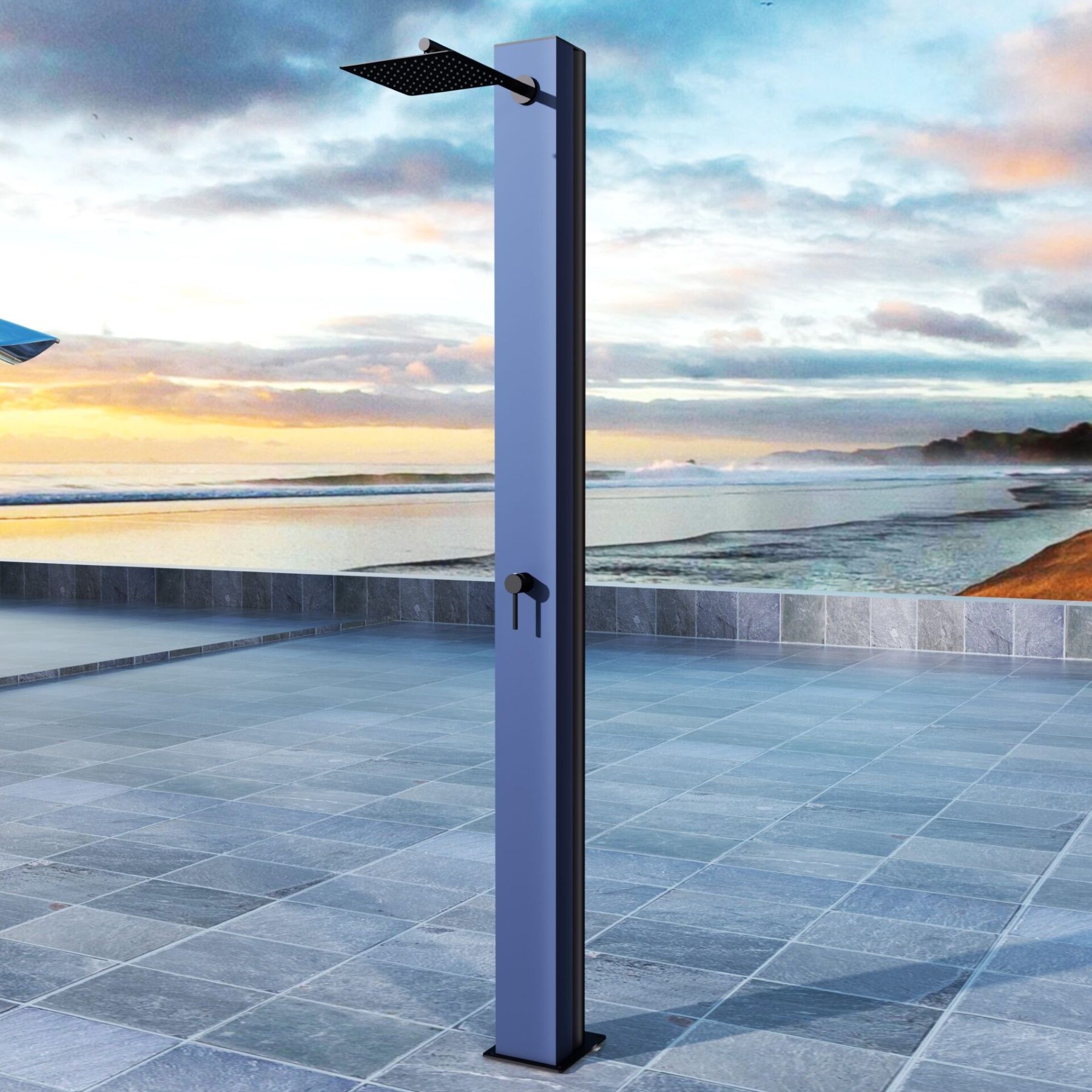 Μοντέρνα Στήλη Πισίνας με αναμεικτική μπαταρία για ζεστό & κρύο νερό σε Μπλε Ωκεανού & Μαύρο Ματ φινίρισμα, κατασκευασμένη από 100% ανοξείδωτο αντιμαγνητικό ατσάλι 316 με τεράστια αντοχή στην φθορά και στην οξείδωση .Ιδανική για εξωτερικούς χώρους. Διαθέτει 221cm Ολικό ύψος.Το προιόν είναι κατασκευασμένο για εξωτερική χρήση και έχει αντοχή από 0ºC έως και  55ºC. ΠΡΟΣΟΧΗ! Παρακαλούμε να αδειάζετε τη δεξαμενή του Νερού προτού μείνει για μεγάλο χρονικό διάστημα αχρησιμοποίητη, για την πρόληψη βακτηρίων και μύκητων.