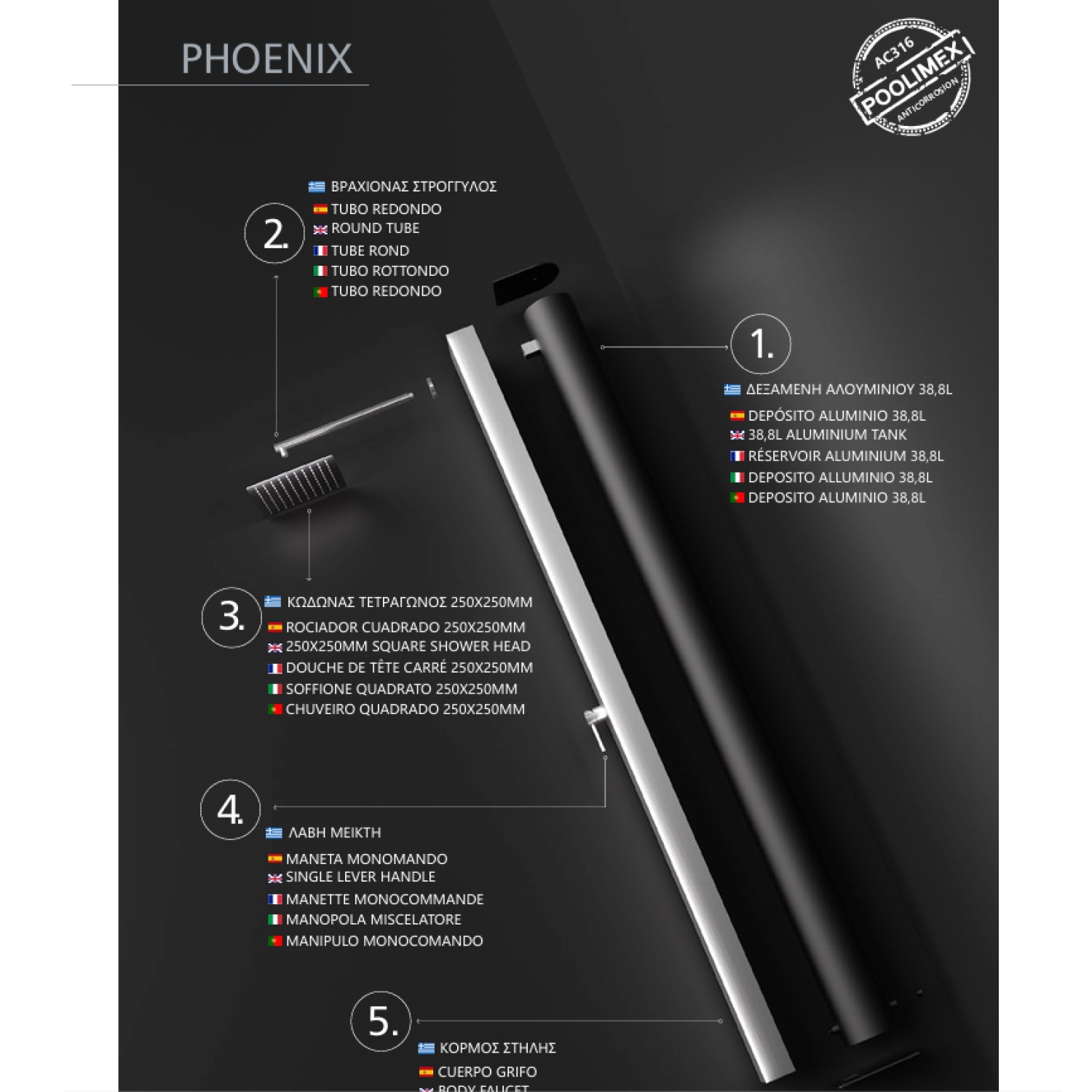 Στήλη Πισίνας Imex PHOENIX σειρά GPP015/AAO Μπλε Ωκεανού Μαύρο (Ζεστό & Κρύο)