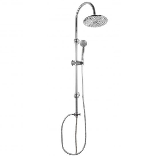 Στήλη Ντους βέργα σε Χρωμέ φινίρισμα με τηλέφωνο, σπιράλ και κεφαλή. Η βέργα έχει διάμετρο Φ.20 και καθαρό ύψος 36.1cm ενώ το Ολικό ύψος του προϊόντος είναι 105cm.