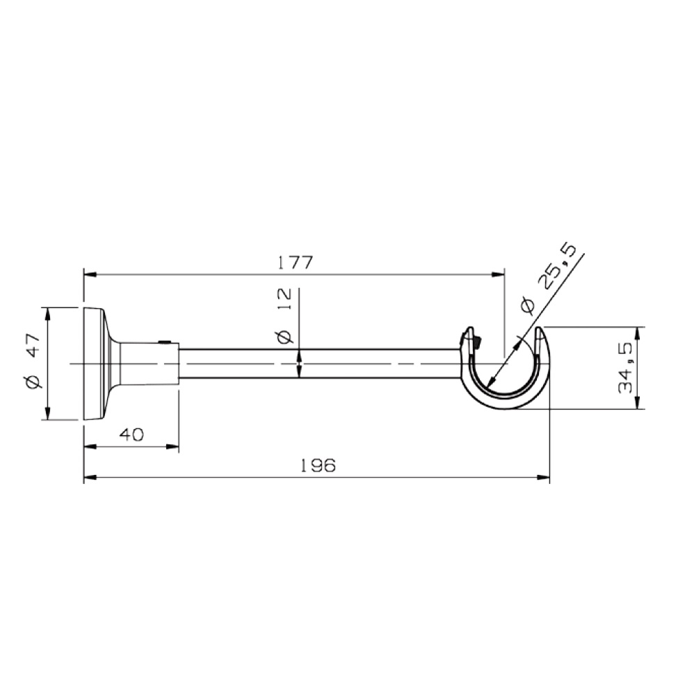 Στρογγυλό στήριγμα για σωλήνες κουρτινόξυλου Φ.25 (πάχους 25mm) σε Νίκελ ματ απόχρωση.Ολική διάσταση στηρίγματος 19.6cm.