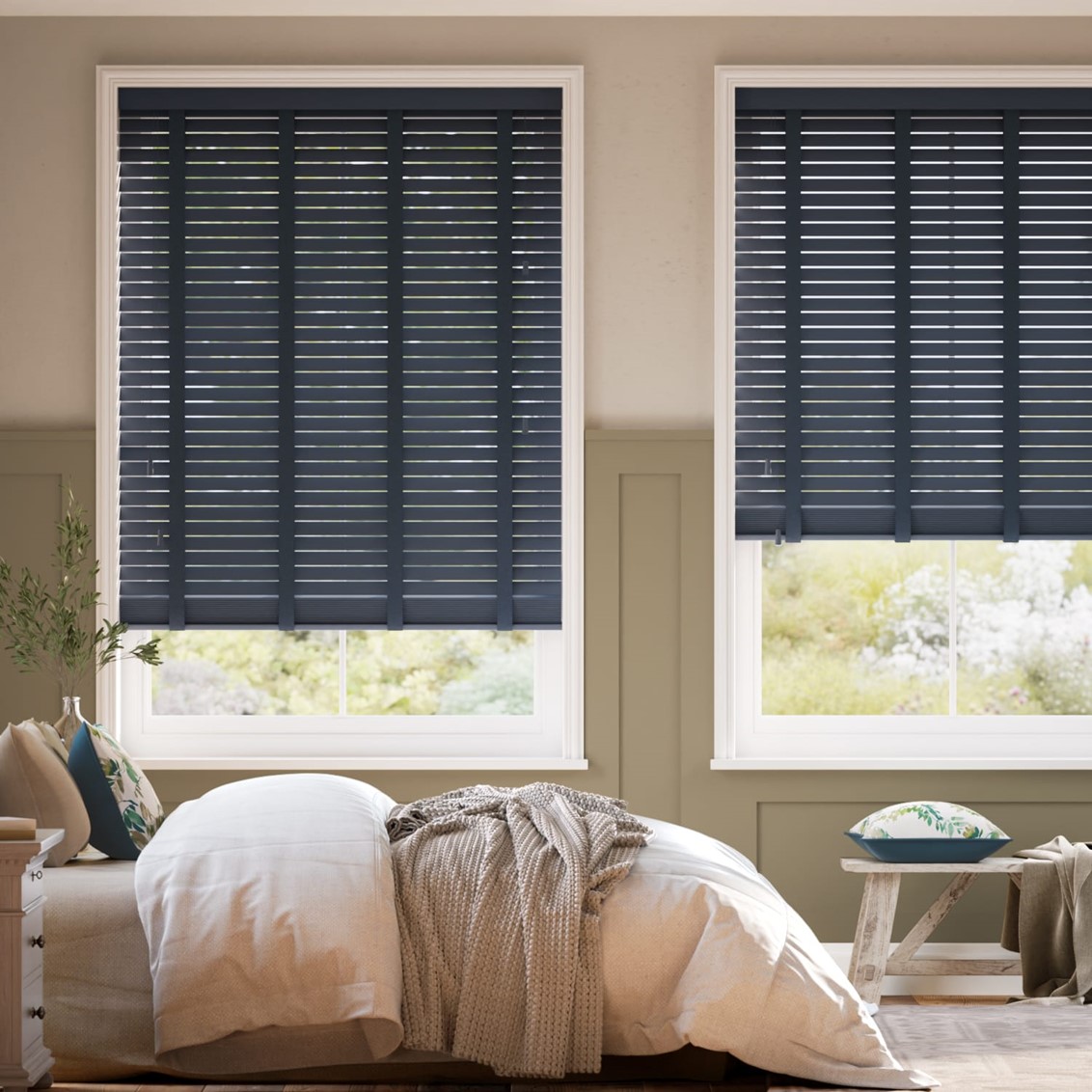 Στόρια 50mm Απομίμησης Ξύλου από PVC με Τιράντες σειρά LA-207 Μπλε Σκούρο