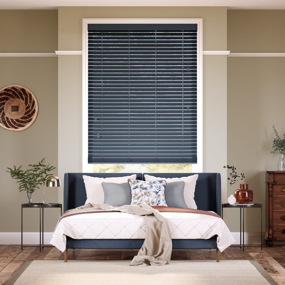 Η κορνίζα κάλυψης / διακόσμησης του επάνω μηχανισμού είναι ξύλινη και στο ίδιο χρώμα με το στόρι.