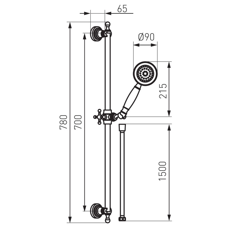 Συρόμενο Σετ Ντους σε Χρωμέ φινίρισμα με Τηλέφωνο 1 λειτουργίας (βροχή),Συρόμενη μεταλλική Ράβδο 745mm,σπιράλ μεταλλικό 1500mm και σωλήνα ντους με κωνικό παξιμάδι. Το τηλέφωνο έχει διάμετρο 90mm.Διαθέτει επίσης και σύστημα Easy Clean για ευκολότερη απομάκρυνση των αλάτων.