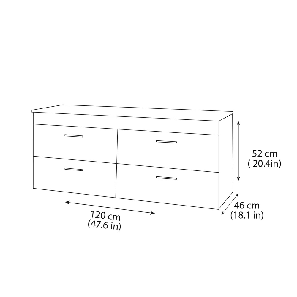 Βάση Επίπλου με 4 Συρτάρια & Top Επιφάνεια Fluted 120 Μπλε (120x46cm)