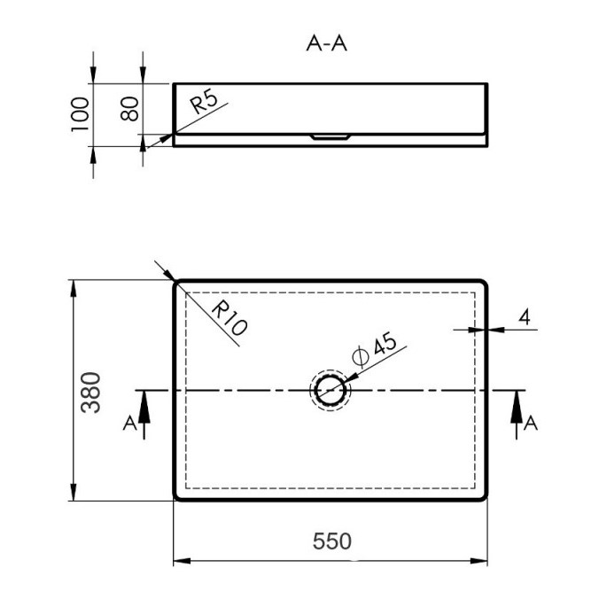 Βάση για Νιπτήρα Inox Oro Opaco με Λευκή Ματ Επιφάνεια Solid Surface (100x46cm)