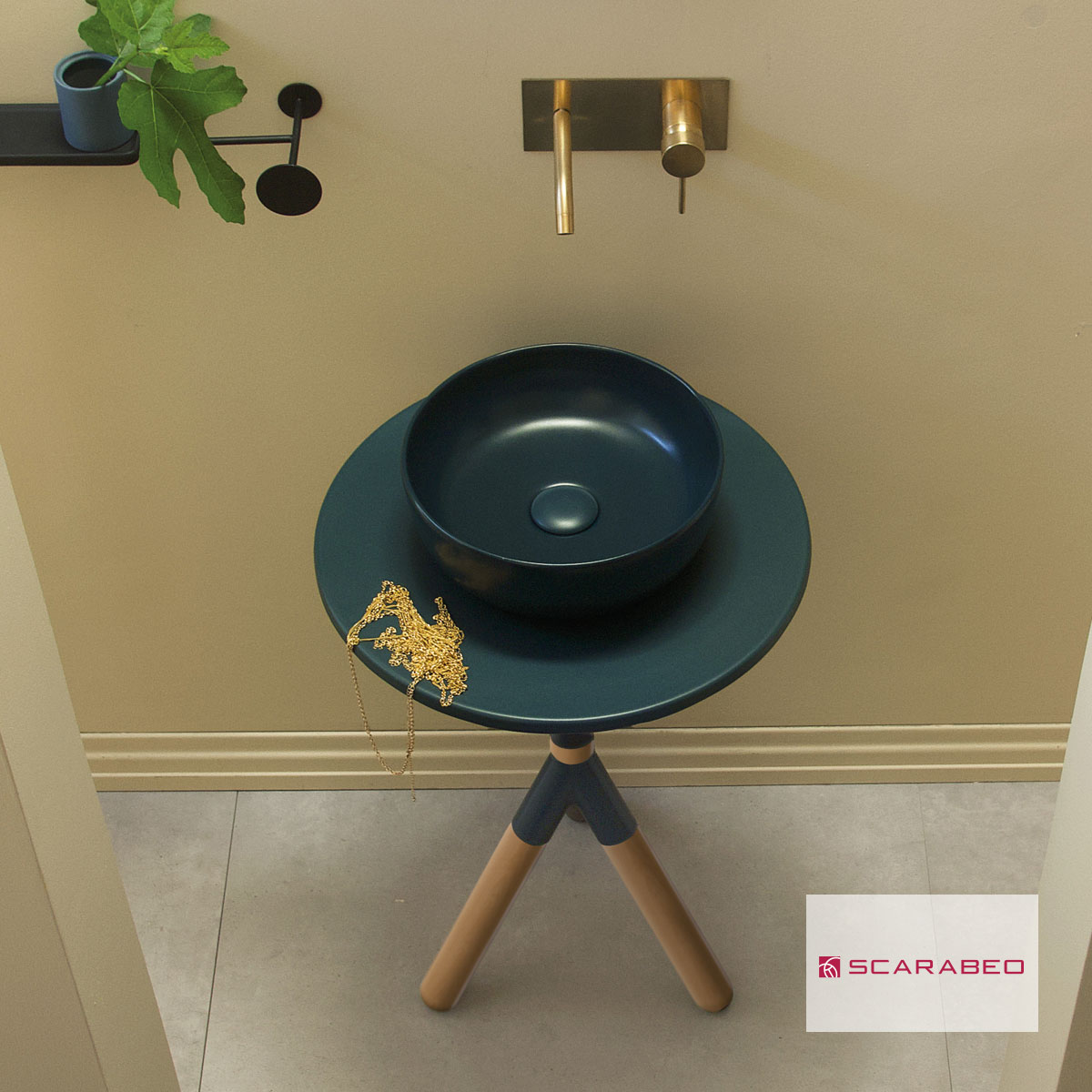 Φέρτε την αυθεντική Ιταλική φινέτσα στο μπάνιο σας με το μοναδικό έπιπλο Cross της Scarabeo.Μια πρωτοποριακή βάση για την τοποθέτηση επικαθήμενου νιπτήρα που συνδυάζει το σκούρο πράσινο με χρώμα φυσικού ξύλου. Η βάση του νιπτήρα και οι σύνδεσμοι είναι κατασκευασμένη από πορσελάνη ενώ ο σκελετός από μασίφ ξύλο. Διαθέτει διαστάσεις 76cm (Ύψος) x 52cm (Διάμετρος Βάσης)