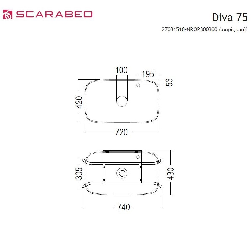 Με πάθος για το αυθεντικό ''Made in Italy'' η Scarabeo δημιούργησε αυτήν την μοναδική σειρά επίπλου που έχει καταφέρει να παντρέψει το διαχρονικό με το μοντέρνο. Το έπιπλο συνδυάζει μεταλλικό σκελετό σε μαύρο ματ φινίρισμα με μαύρη βάση από αυθεντική πορσελάνη ενώ για αποθηκευτικό χώρο διαθέτει 1 συρτάρι με μηχανισμό ''push to open'' σε χρώμα rovere nodato για την υποδοχή επικαθήμενου νιπτήρα.  Διαστάσεις 77.5cm (Ύψος) x 74cm (Πλάτος) x 43cm (Προεξοχή από τον τοίχο)