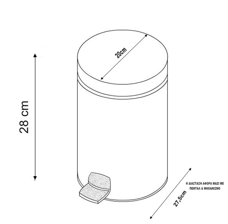 Κάδος απορριμμάτων μπάνιου σε Λευκό Φινίρισμα.Ο κάδος έχει χωρητικότητα 5 λίτρων με διαστάσεις 20cm (διάμετρος) x 28cm (ύψος) ενώ διαθέτει ανθεκτικό μηχανισμό με πεντάλ για το άνοιγμα του.Εσωτερικά το χαρτοδοχείο διαθέτει ανθεκτικό πλαστικό κάδο που αφαιρείται πανεύκολα για να χρησιμοποιείτε οτιδήποτε χημικό επιθυμείτε.Δυνατότητα προσθήκης της διεθνής πατέντας Soft Close στο καπάκι του, η οποία διαθέτει μηχανισμούς και ελάσματα τα οποία επιτρέπουν το ομαλό αθόρυβο κλείσιμο του καπακιού του χαρτοδοχείου.