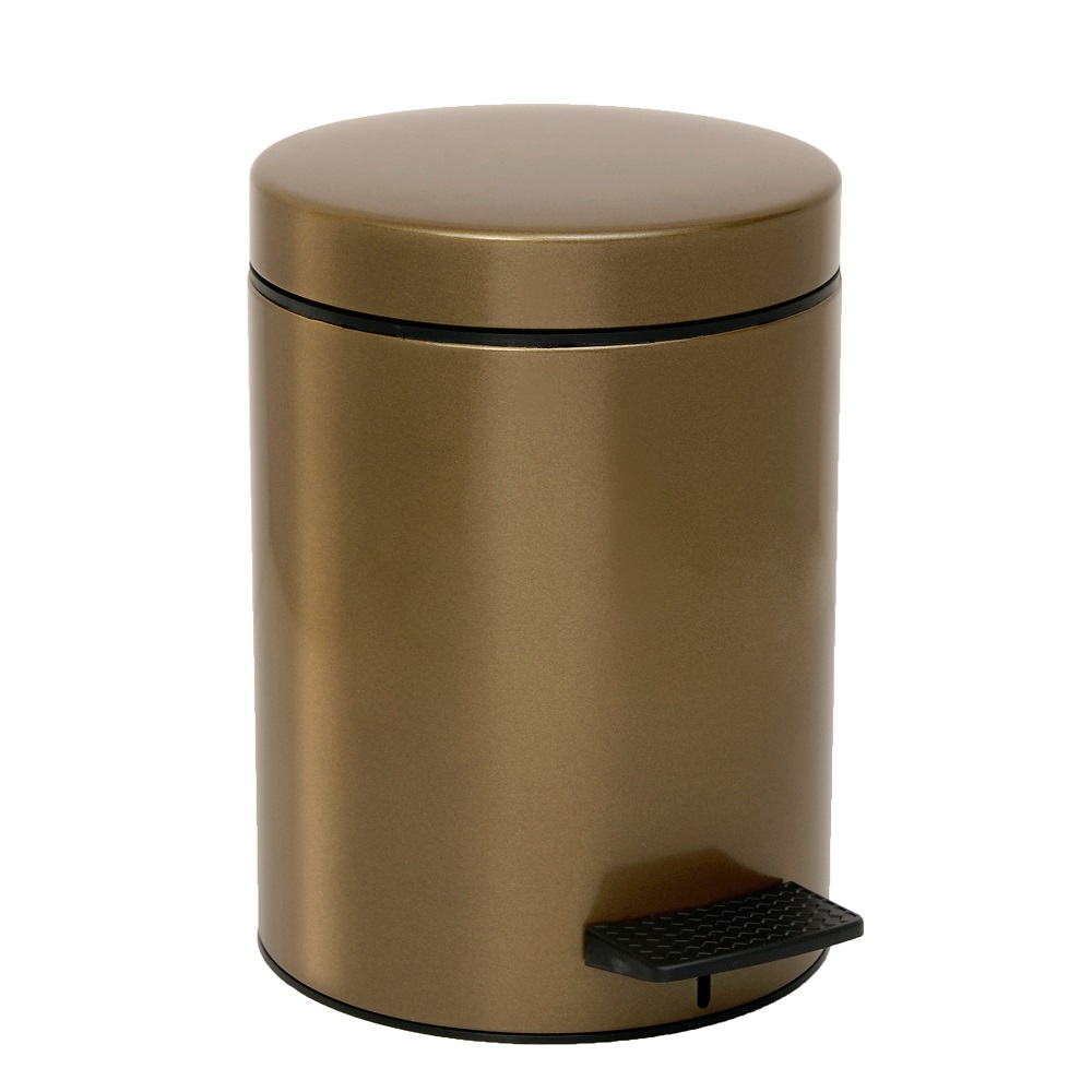 Κάδος απορριμμάτων μπάνιου σε Λαδί Χρυσό Φινίρισμα.Ο κάδος έχει χωρητικότητα 5 λίτρων με διαστάσεις 20cm (διάμετρος) x 28cm (ύψος) ενώ διαθέτει ανθεκτικό μηχανισμό με πεντάλ για το άνοιγμα του.Εσωτερικά το χαρτοδοχείο διαθέτει ανθεκτικό πλαστικό κάδο που αφαιρείται πανεύκολα για να χρησιμοποιείτε οτιδήποτε χημικό επιθυμείτε.Δυνατότητα προσθήκης της διεθνής πατέντας Soft Close στο καπάκι του, η οποία διαθέτει μηχανισμούς και ελάσματα τα οποία επιτρέπουν το ομαλό αθόρυβο κλείσιμο του καπακιού του χαρτοδοχείου.