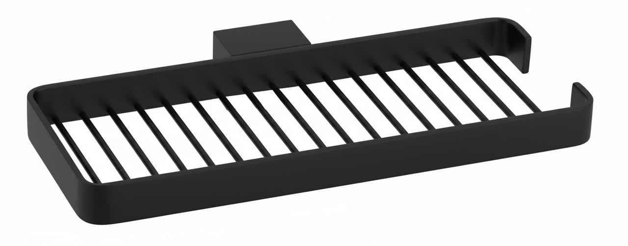 Μια Σπογγοθήκη μοντέρνου τετράγωνη γραμμικού σχεδιασμού σε Μαύρο Ματ φινίρισμα, ιδανική περίπτωση για κάθε μοντέρνο μπάνιο. Τοποθετείται στον τοίχο με βίδες. Διαθέτει διαστάσεις 25cm (πλάτος) x 12cm (προεξοχή από τον τοίχο) x 2cm (πάχος)